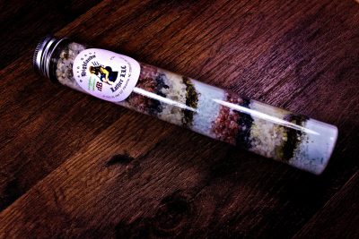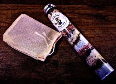 Ingredients: Epson Salts, Dead Sea Salt, Himalayan Pink Salt, Baking Soda, Modified Tapioca Starch, Eucalyptus and Spearmint Botanicals, Black Lava Salt.