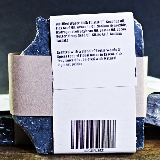 Ingredients: Distilled water, Milk Thistle Seed Oil, Coconut Oil, Flaxseed Oil, Avocado Oil, Sodium Hydroxide (Lye), Hydrogenated Soybean, Castor oil, Cocoa Butter, Hempseed Oil. Citric Acid, Sodium Lactate