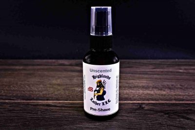 - 2 oz. Unscented Pre-Shave oil in an Amber Plastic Bottle with Treatment Pump. This one of the few items we sell in plastic due to the location of use and the possible danger of using glass.